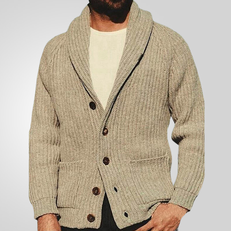 Men’s Lapel Knitting Cardigan Fashion Button Sweater With Pockets Outwear Long Sleeve Top Spring Fall