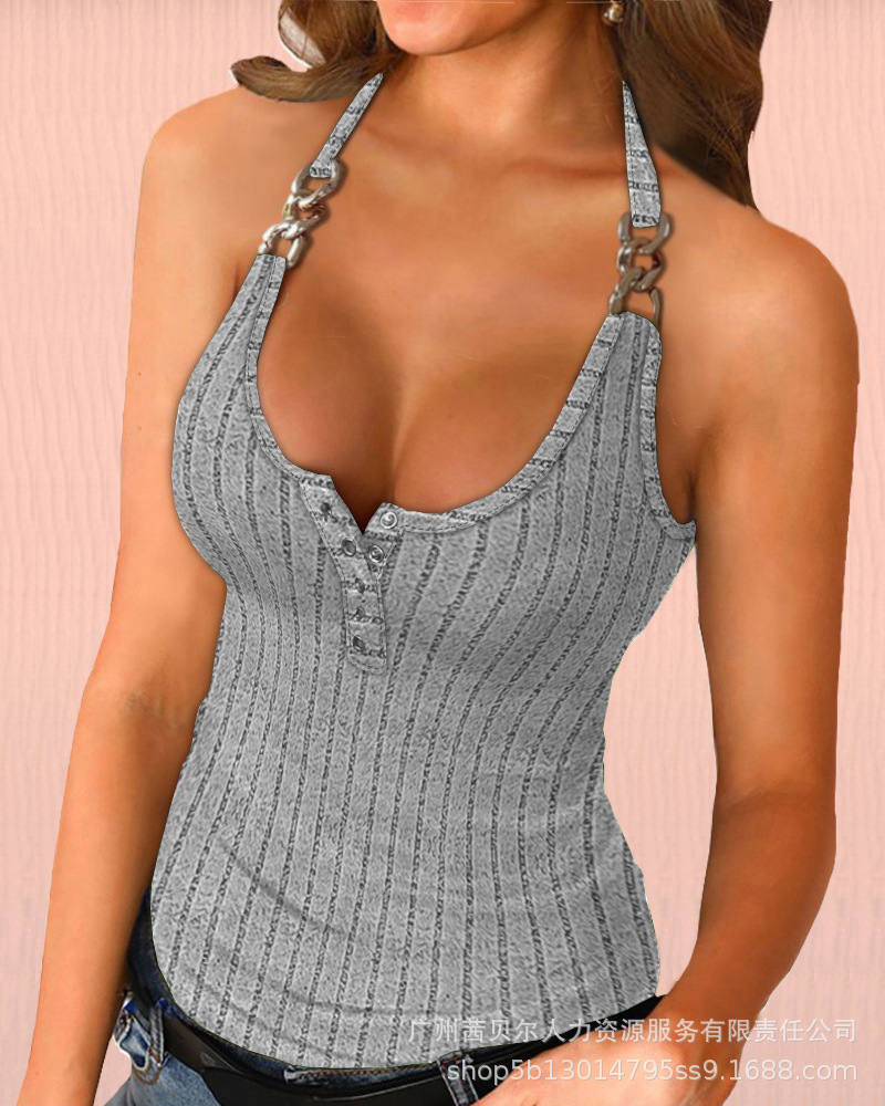 Women’s Shoulder Strap Halter Sunken Stripe Vest Top